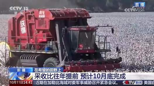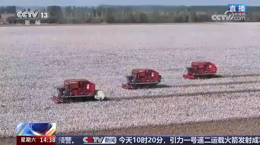 央視報道-直播沃得采棉機(jī)在新疆石河子棉田高效采收