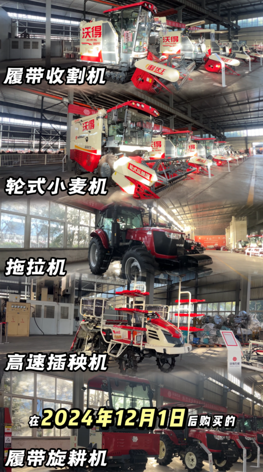 參與群體:2024年12月1日后購買沃得履帶式收割機、拖拉機、履帶式旋耕機、輪式小麥機和高速插秧機中任意一款產品的用戶均可參與。